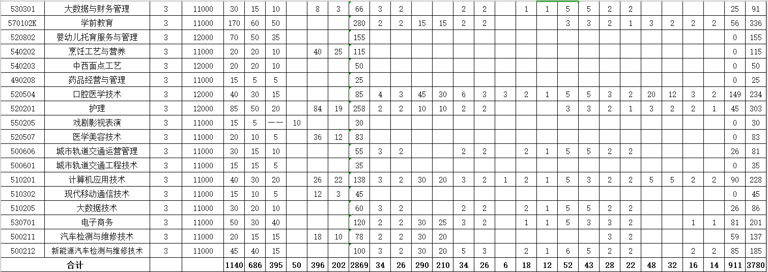 2021年云南城市建設職業學院高職(專科)招生專業計劃