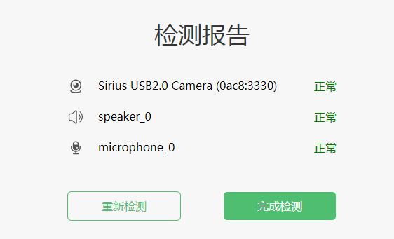 點擊“重新鏈接”或“開始檢測”,選擇可以看到、可以聽到,點擊“完成檢測”。