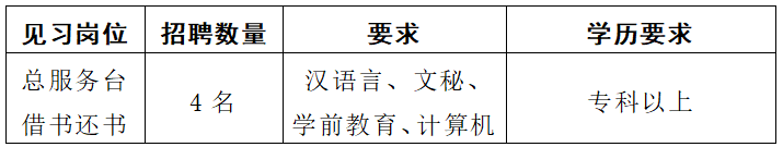 根據易門圖書館人員空缺崗位需求,為下一步補充圖書館人員儲備人才資源,根據《云南省人力資源和社會保障廳 省財政廳等六部門關于實施萬名青年見習計劃的通知》以及國家和省、市高校畢業生就業有關文件精神,結合圖書館實際,現將圖書館招聘就業見習人員相關事宜公告如下: