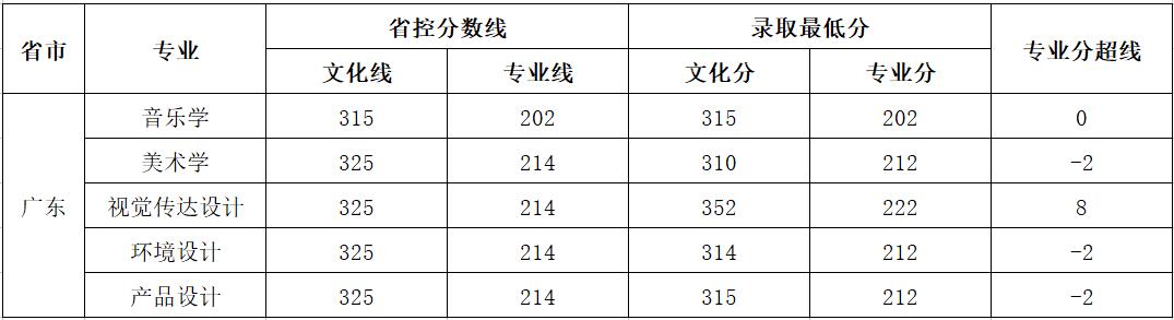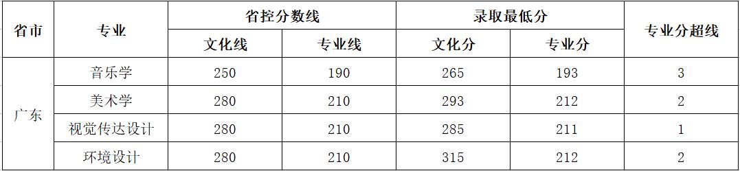 2017年藝術類錄取最低分