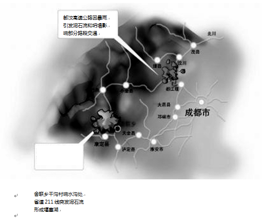 汶川縣“5?12”地震震中映秀鎮(zhèn)由于持續(xù)暴雨,從都江堰通往汶川縣城的生命線——都汶路已經(jīng)因泥石流而阻斷。據(jù)介紹,受到近日暴雨、泥石流等影響,都汶路已發(fā)生滑坡、塌方等大小不等的地質(zhì)災(zāi)害共計(jì)30多處,其中較嚴(yán)重的有五六處。在“5?12”大地震震中映秀鎮(zhèn),都汶路百花大橋一帶,受?chē)?yán)重泥石流災(zāi)害影響,道路已經(jīng)中斷。2009.7.17瓢潑大雨,山體滑坡,昨日凌晨5時(shí)許,都江堰虹口鄉(xiāng)遭遇泥石流襲擊,以前只有1米多寬的河溝,現(xiàn)在變得差不多有15米寬。2009.7.23日四川省甘孜藏族自治州康定縣境內(nèi)23日凌晨因暴雨引發(fā)泥石流,大渡河河道在短時(shí)間內(nèi)形成了長(zhǎng)3000米、寬約50米的堰塞湖,庫(kù)容達(dá)300萬(wàn)立方米。
