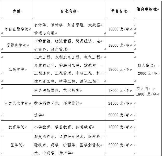 | 財會金融學(xué)院 | 財務(wù)管理、會計、證券與期貨、投資與理財 | 10000/年 | 四人高層: 2000元/年 四人間: 1800 元/年 八人間: 600 元/年 |