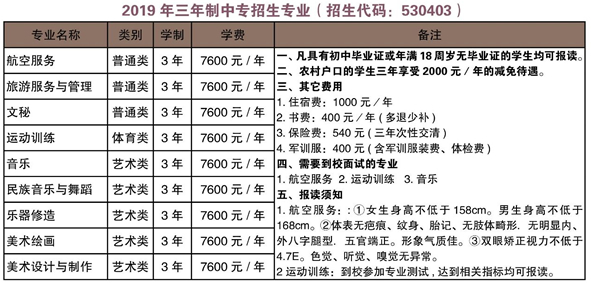 昆明藝術職業學院2019年五年制大專、三年制中專招生簡章