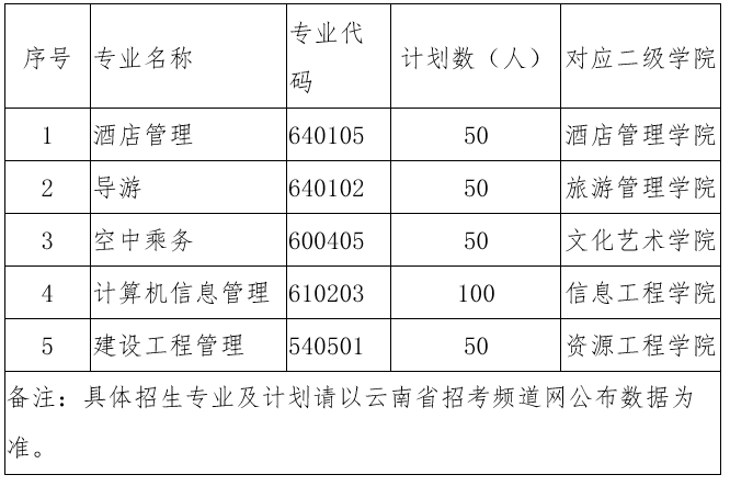 2020年云南旅游職業學院單獨考試招生工作實施方案