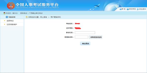 在該界面可以對考生的登錄密碼進行修改。