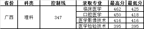 昆明醫科大學海源學院2019年廣西省錄取分數線